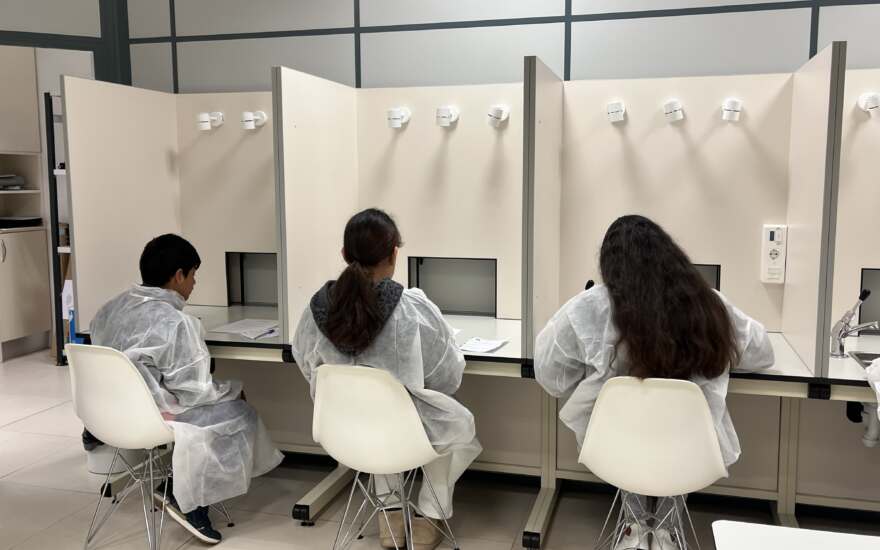 The first stop brought participants into the daily world of researchers through a guided visit to AZTI’s facilities. Students toured everything from the laboratory to the experiential kitchen, rotating in small groups across different activity stations.