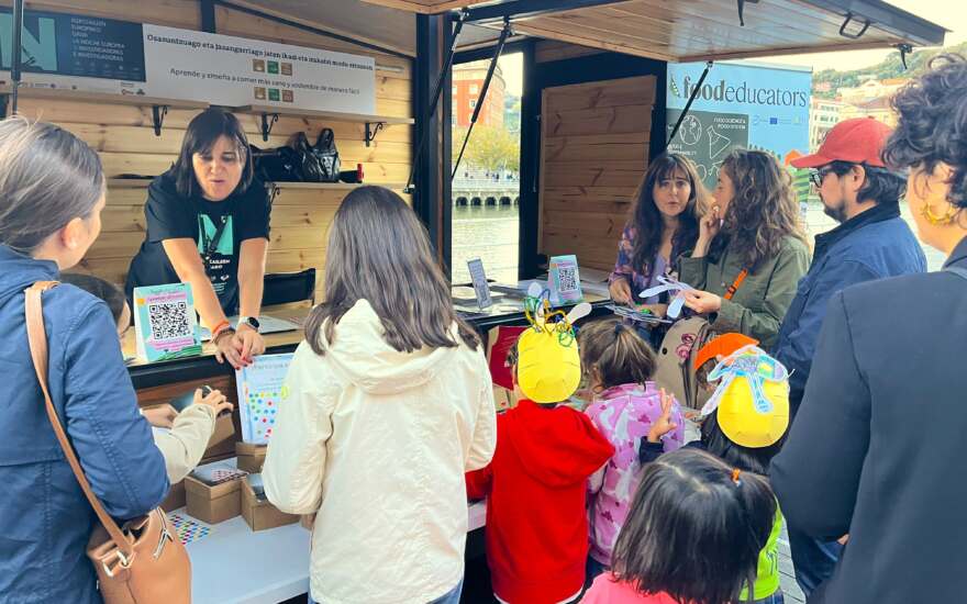 Los Salvacomidas and FoodEducators joined forces with researcher and lecturer Paloma Rohlfs Domínguez, from the Department of Developmental and Educational Psychology at the EHU, to offer visitors an experience under the motto “Learn and teach how to eat healthier and more sustainably in an easy way”. Our stand became an interactive space where children could discover how to improve their diet, read food labels correctly, identify ultra-processed products, and reflect on food waste.