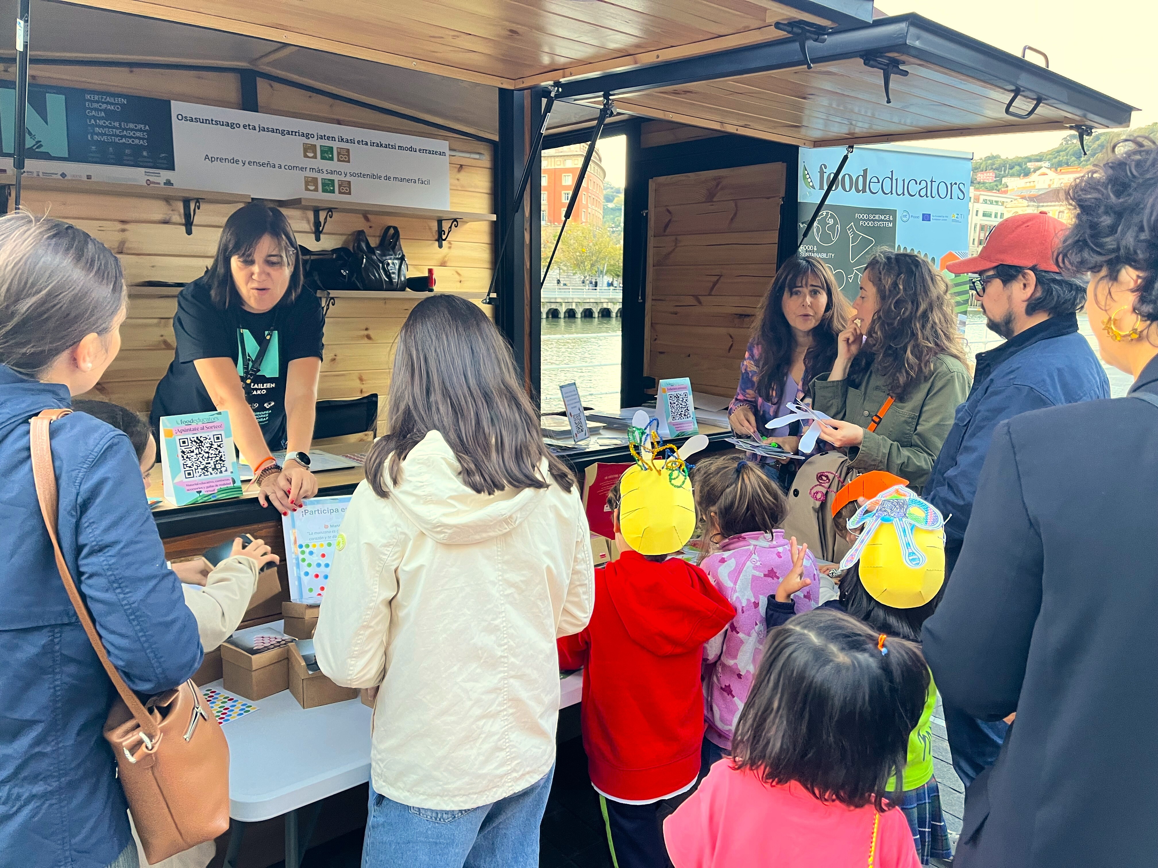 The European Researchers’ Night, organised by the University of the Basque Country (EHU), is part of a pan-European initiative taking place in more than 25 countries and 460 cities across Europe, aimed at sparking scientific curiosity and encouraging interest in research among young people and families. It was a unique opportunity for Los Salvacomidas and FoodEducators to show Basque families the importance of adopting healthier and more sustainable eating habits through fun and practical activities.